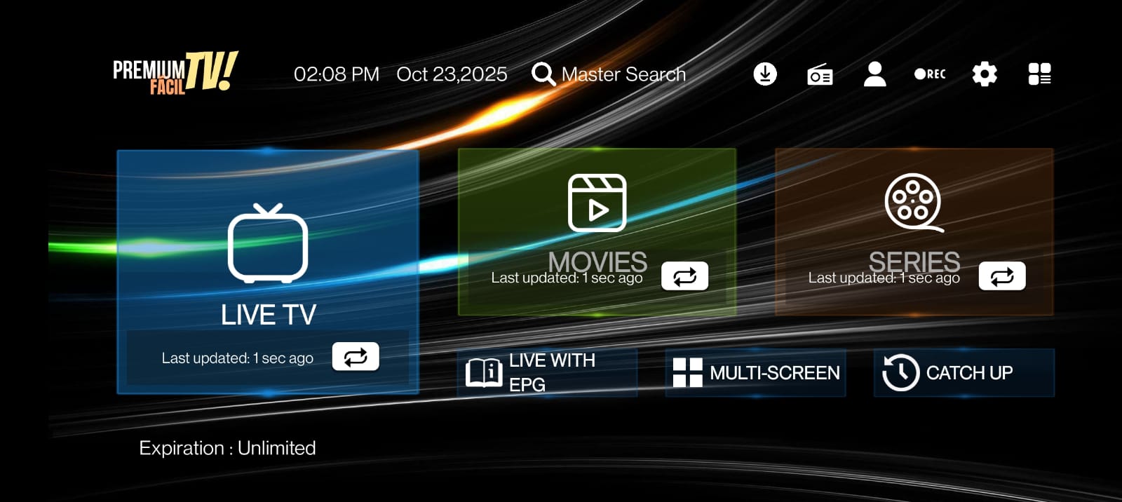 Abrir la aplicación PremiumFacilTV desde tu pantalla de inicio.