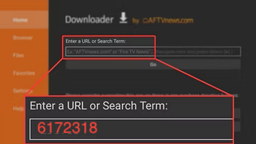 Abre la aplicación DOWNLOADER e ingresa el código 6172318 en el campo de texto, luego selecciona GO.