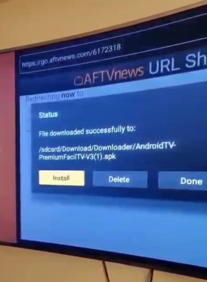 Cuando aparezca la ventana de descarga, selecciona la opción de Instalar o Install para comenzar la instalación de PremiumFacilTV.